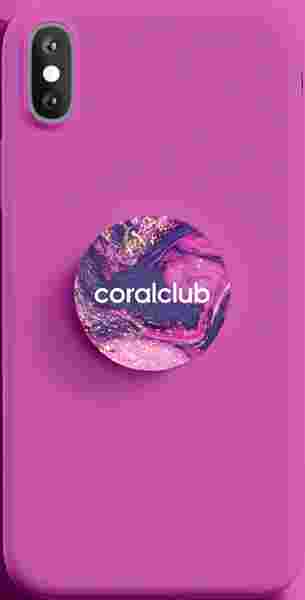 Попсокет с логотипом Coral Club позволит комфортно использовать любимые гаджеты.